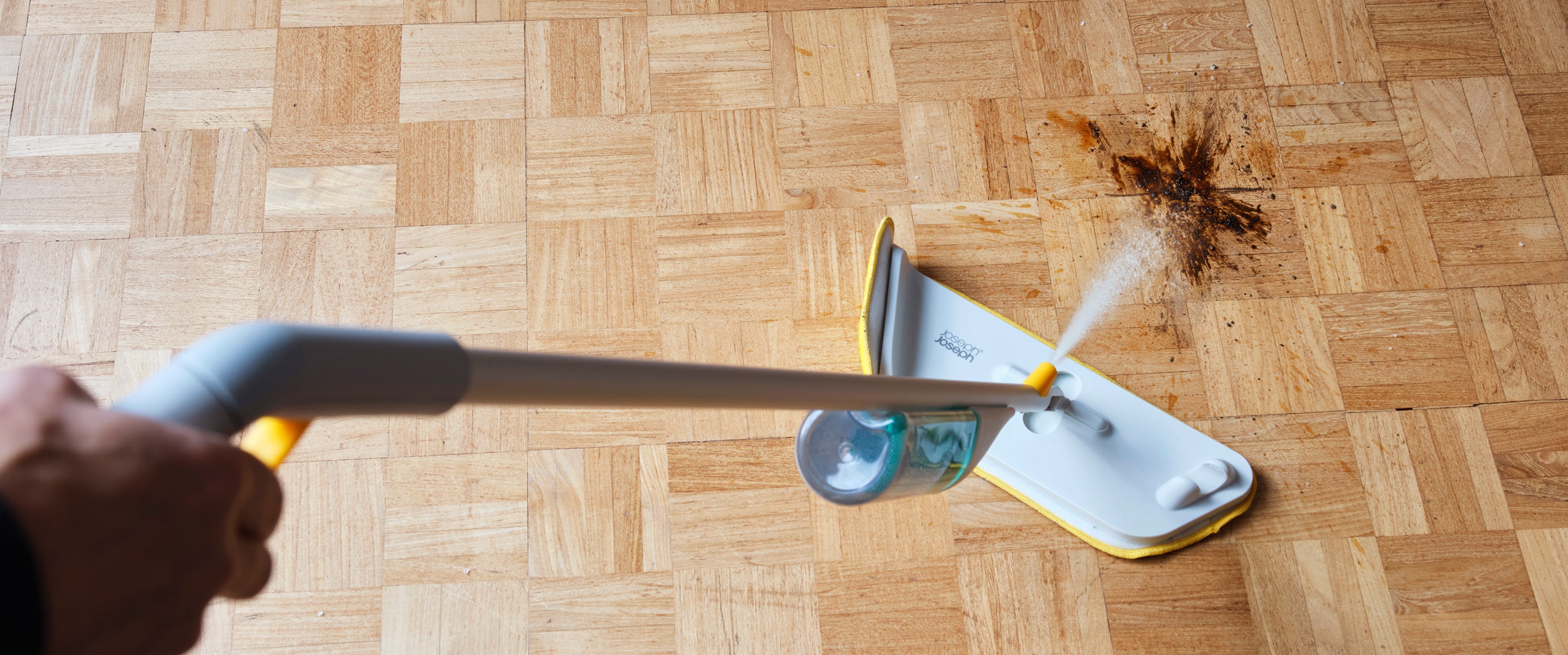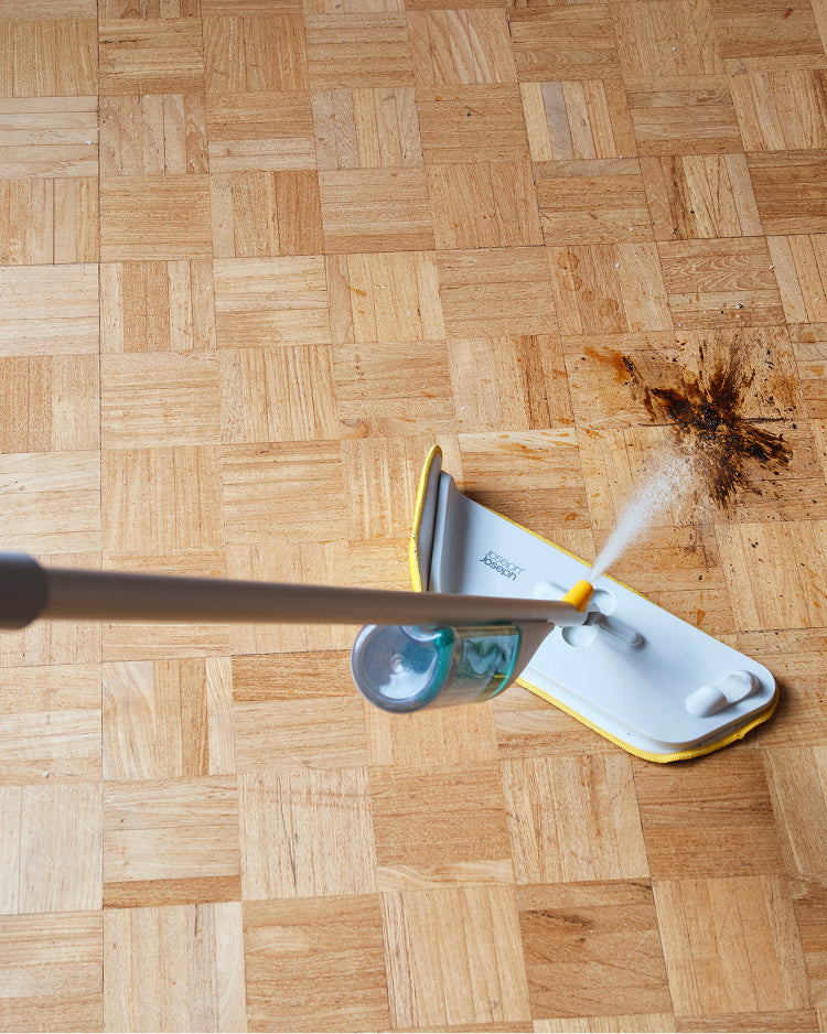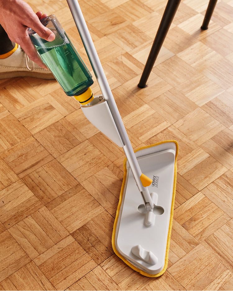 - Spray mops, such as the Joseph Joseph CleanTech™ 2-in-1 Spray Mop – which have built-in mechanisms to easily apply cleaning detergents – are brilliant for mopping up spillages and for reaching areas underneath cabinets and tables that other mops struggle to get to.