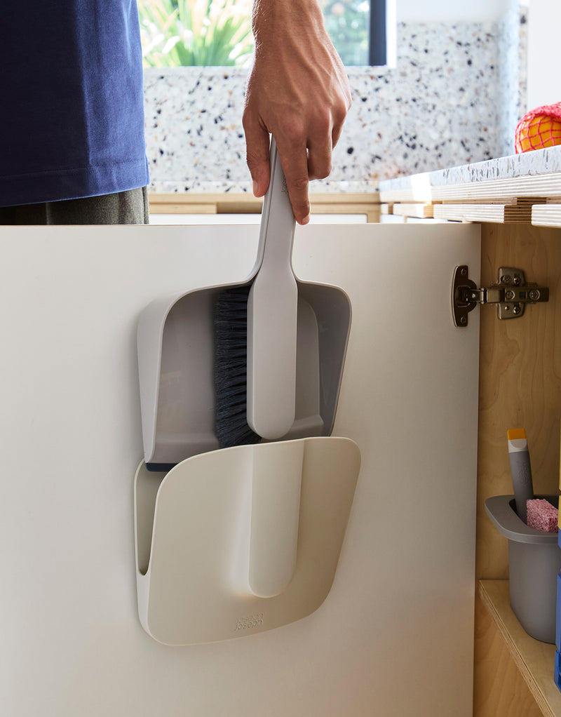 Dustpans and brushes come in all shapes and sizes but are often a difficult thing to find a home for. Our CleanTech™ Wall Mounted Dustpan and Brush is unique because it can be hygienically stored away in a Dust-shield™ holder. The sturdy brush and pan also clip together for organized stowing and the pan has a rubber edge for more efficient sweeping.