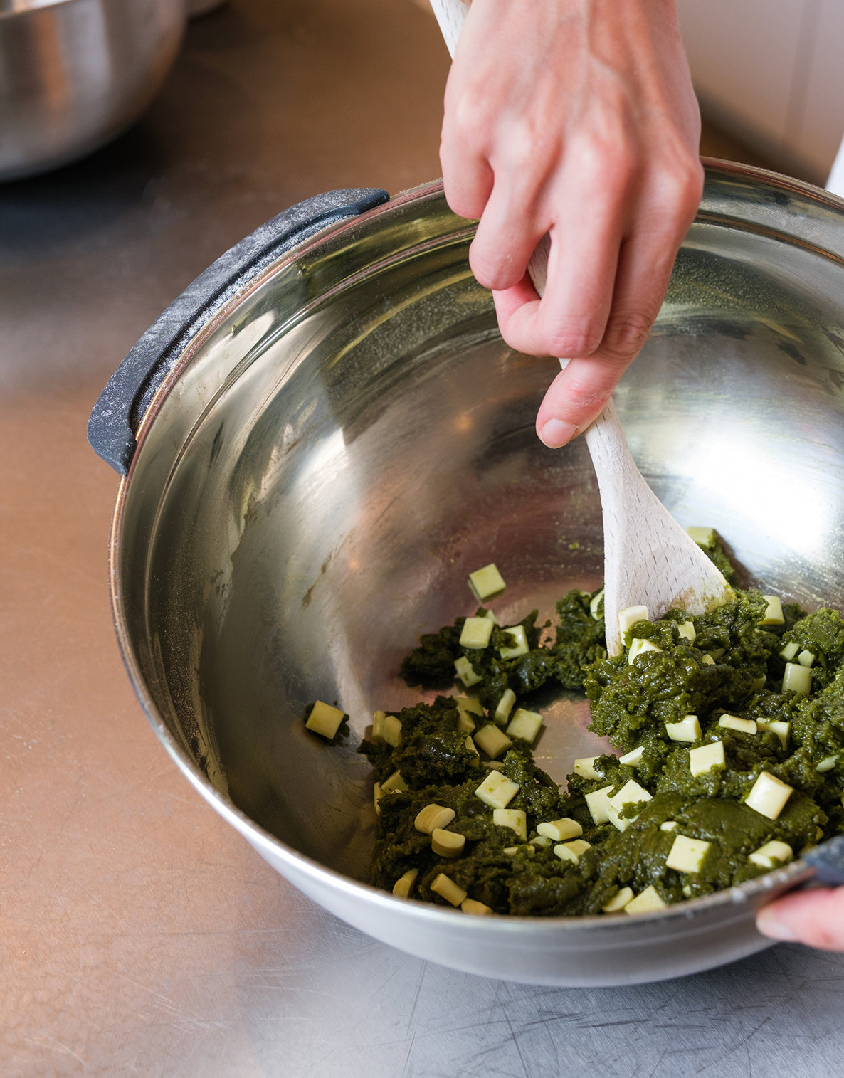 - Step 3In a separate bowl, combine the flour, matcha powder, bicarbonate of soda, and salt and mix well. Add the dry ingredients to the wet and stir just until combined and fold in the chocolate chips. Cover with clingfilm and chill in the fridge for 15 minutes, until cold enough to roll into balls.