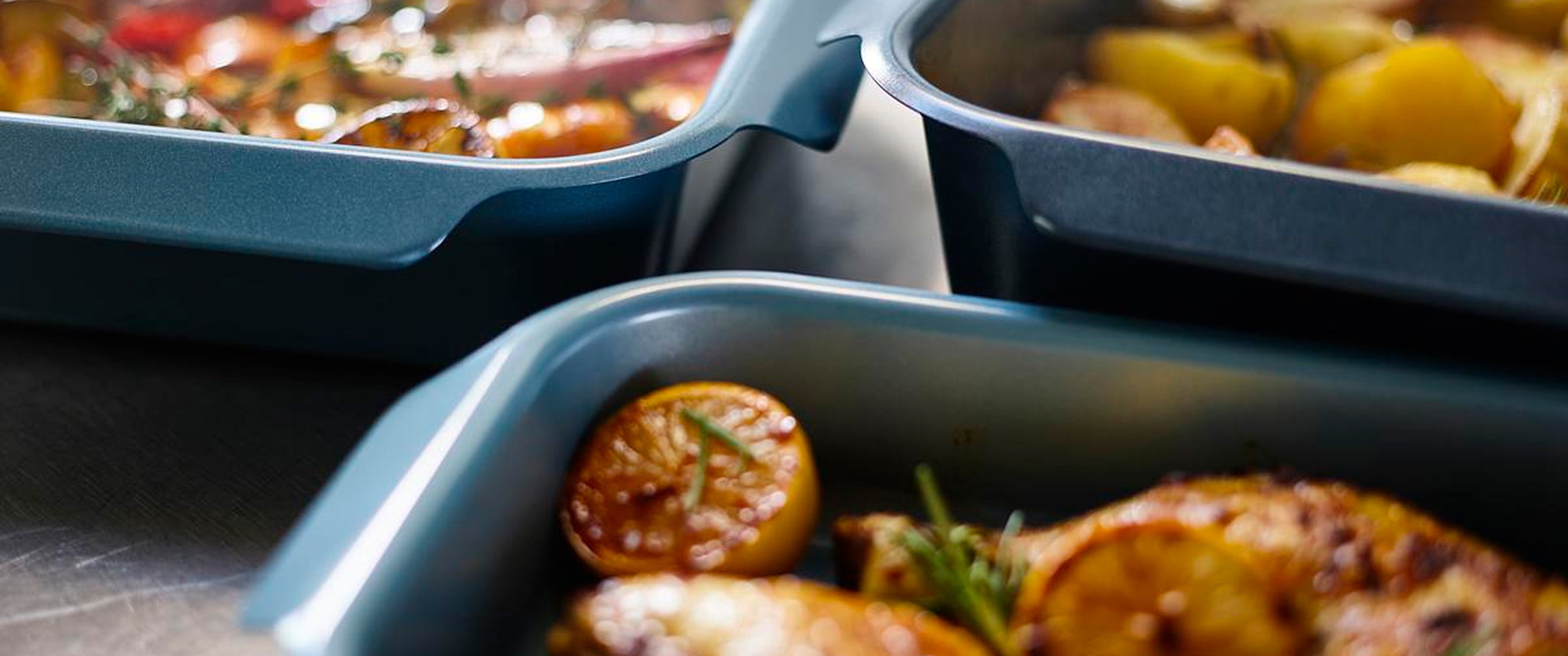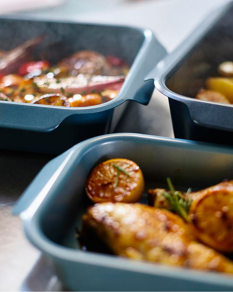 For those who love baking, the Nest™ Roasting Trays are indispensable. These non-stick trays are designed for even heat distribution, making them ideal for cookies, roasting vegetables, or your roast dinner. The easy-grip handles mean you won’t accidentally touch your food when removing it from the oven. Plus, they nest together for tidy storage.
