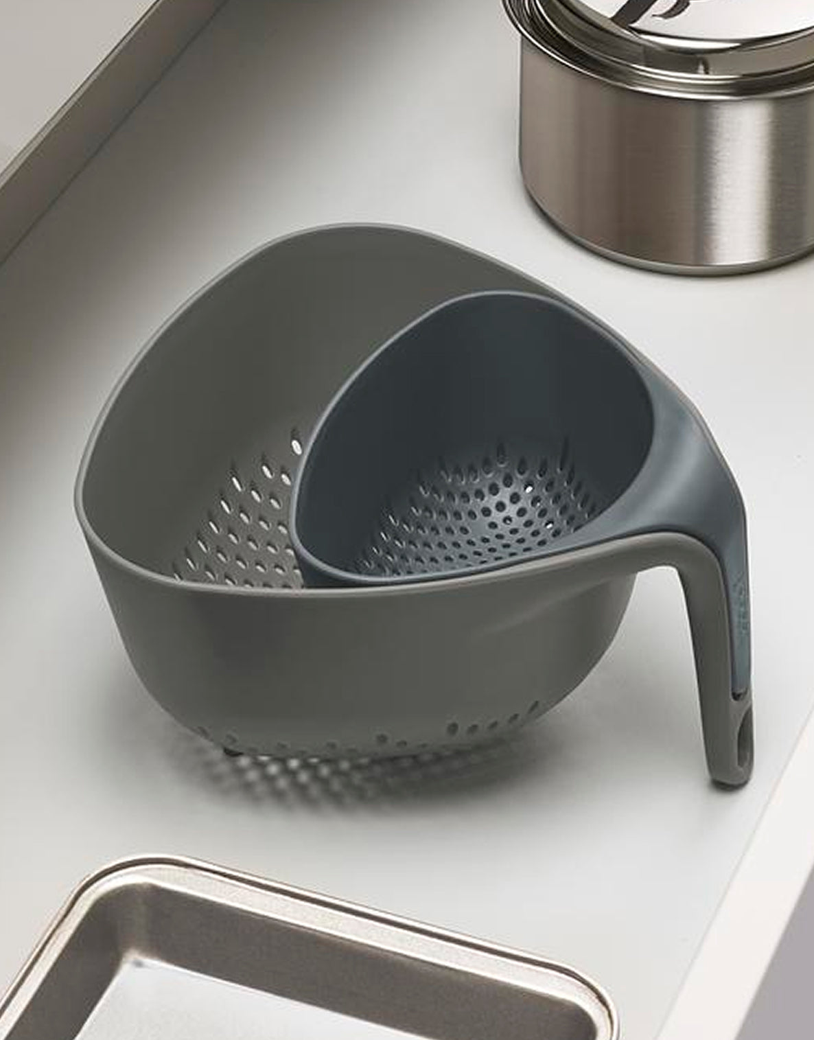 A sturdy colander is a must-have for pasta lovers. The Nest™ Colanders are stackable, space-saving, and perfect for rinsing vegetables or draining spaghetti without fuss. Plus, our new Droplet colanders feature folding handles, giving you even more cupboard space, and two different sizes for washing and draining everything from small fruits to larger meals.